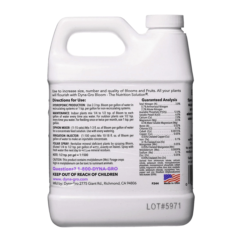 Quando aplicado, os nutrientes do DYNA-GRO BLOOM ficam imediatamente disponíveis, dando às suas plantas a capacidade de acessar os nutrientes de que precisam em momentos críticos.