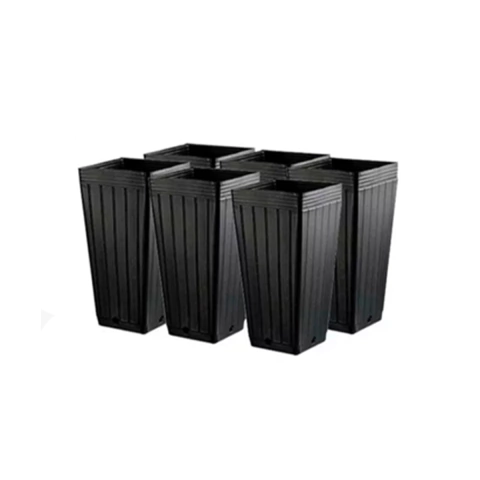 Vaso quadrado com 7 litros de capacidade. Por ser quadrado consegue-se um melhor aproveitamento do espaço dentro de estufas.